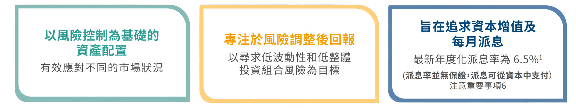 基金經理或董事(視情況而定)可酌情決定就子基金的分派類別從收入及╱或資本中作出分派。從資本撥付分派款項代表歸還或提取投資者原先投資額的部分或該原先投資額應佔的任何資本收益。該等分派可能導致每單位(或股份)資產淨值即時減少。「可分派淨收入」指有關分派類別的淨投資收益(即扣除收費及支出的股息收入及利息收入),亦可包括未經審核管理賬目中的變現淨收益(如有)。但「可分派淨收入」並不包括未變現淨收益。分派並無保證。過往分派記錄不可作為其未來分派之指標。正數的派息率並不代表投資回報為正數。