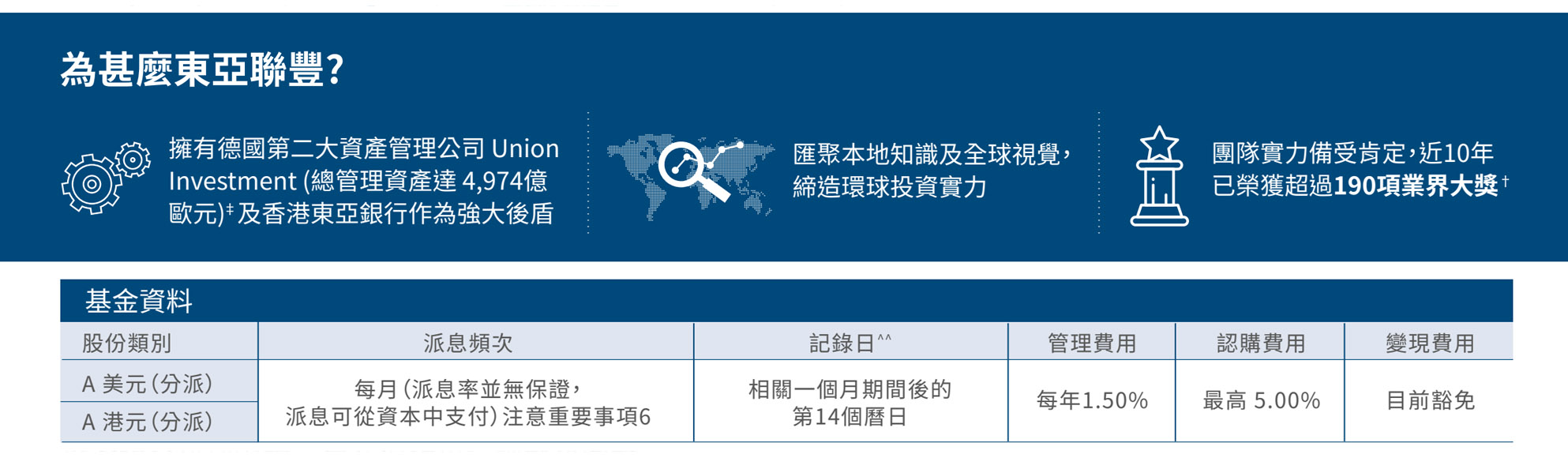 本網站由東亞聯豐投資編製,僅供備知。本網站所載資料於截至發行日期仍然有效。東亞聯豐投資保留權利删除或修改本網站的資料而不事先通知。概無保證本網站的資料並無因為技術上的失誤(傳送中斷、傳送受第三者干擾、電腦病毒等等)而有所改變。