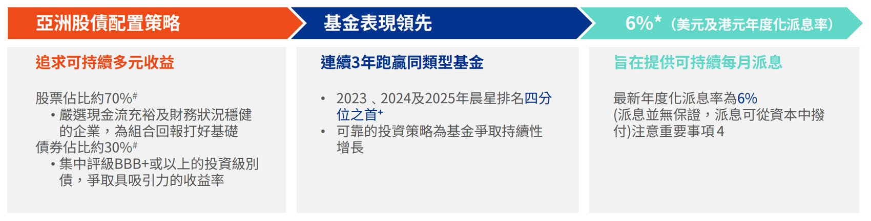 A sub-fund may be subject to concentration risk /China and Asia market risk, emerging markets risk, asset allocation risk, risks of investing in other funds, currency risk, currency hedging risk, RMB currency and conversion risks.