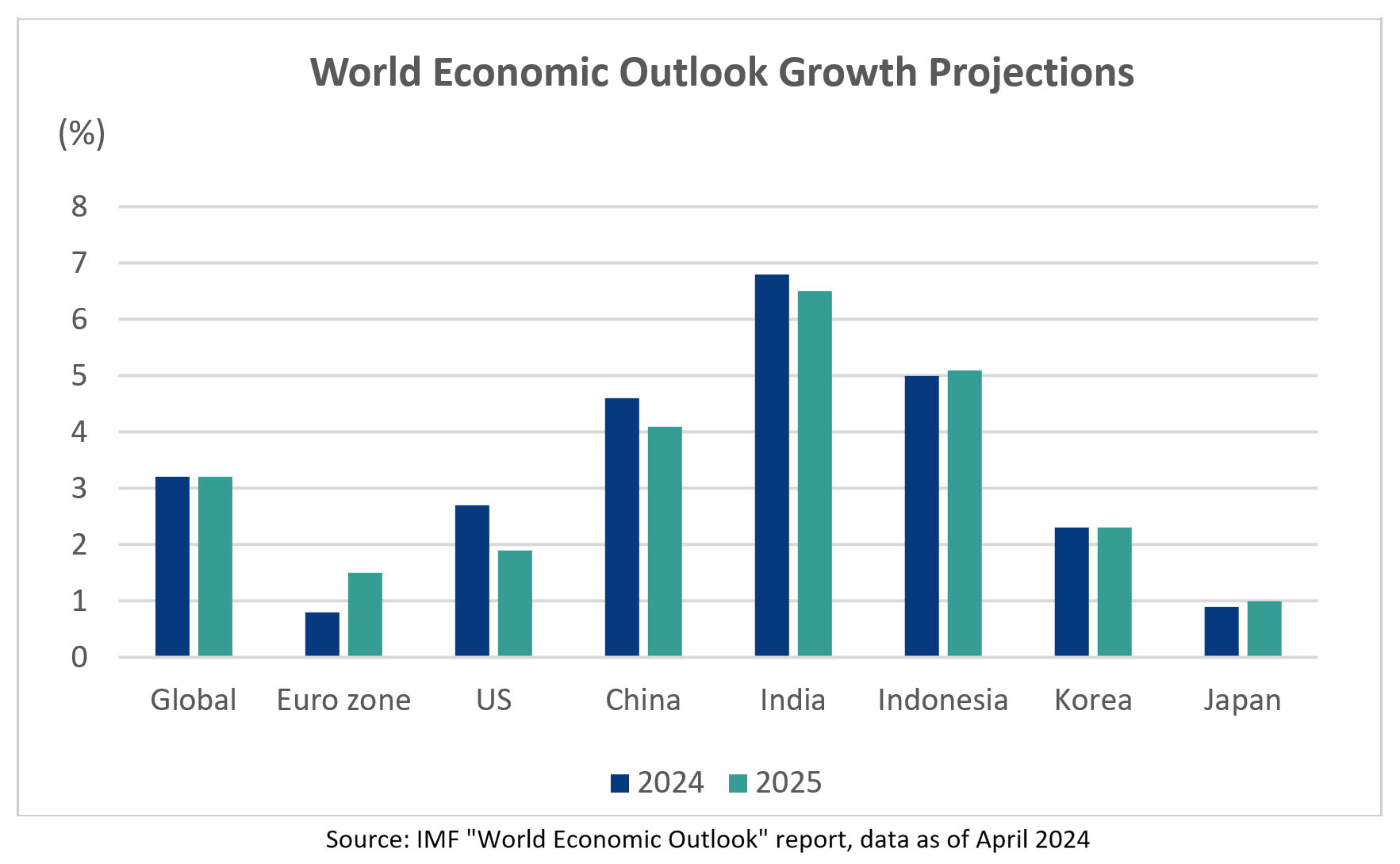 The Fed now expects to cut interest rates only once this year, signalling long-term rates will likely stay elevated for longer. The timing of a US rate cut remains unclear, but Europe and Canada have already lowered their interest rates, whereas Japan raised rates for the first time in 17 years in response to its long-lost inflation. Indonesia unexpectedly hiked rates in April to shore up its currency. Global rates remain persistently high, with consumer prices in many countries still standing well above central banks targets. The resilience across world economies continues to surprise.