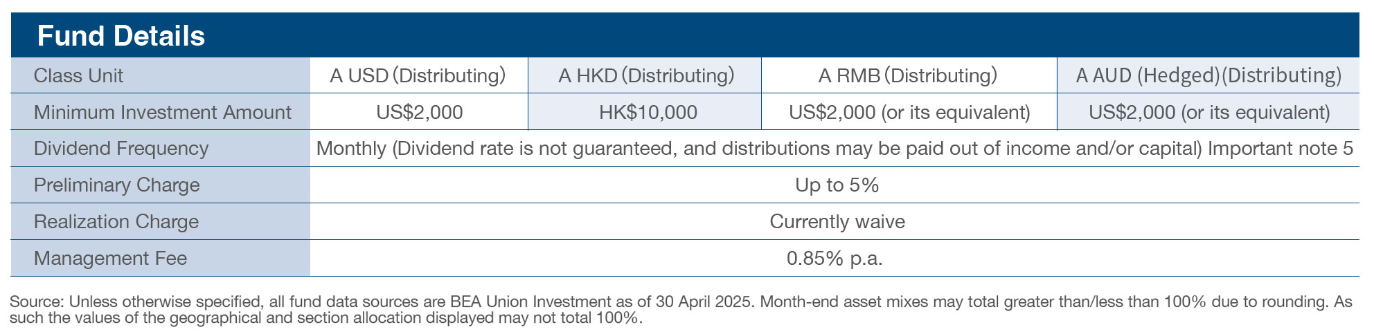 “BEA Union Investment Series” is an umbrella unit trust established under the laws of Hong Kong.