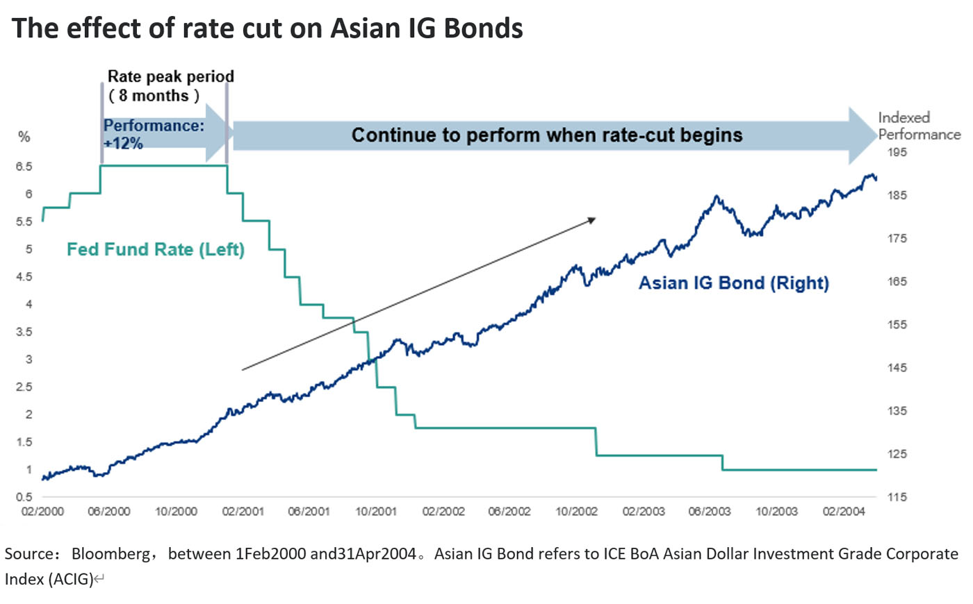 In brief, we expect conditions should be ripe for rates to reverse course by mid-2024. US rates will also bode well for rates-sensitive High Yield bonds, which should close the performance gap between Investment Grade bonds and High Yield bonds, given the latter should see improvements in their credit quality. In early next year, South Korea and some Chinese Investment Grade bonds are still seen as top choices. As we enter a rate-cutting quarter, our team remains optimistic about High Yield bonds such as Macau gaming bonds and renewable energy in India.
