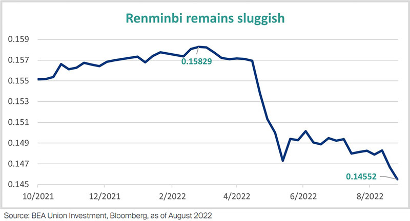 To ensure liquidity and support economic activities, the PBoC cut rates in mid-August, sending USD/CNY and onshore bond yields lower. Shortly after, the central bank lowered its FX reserve requirement ratio to limit Renminbi weakness. BEA Union Investment believed the Renminbi will remain weak against the USD as it would take time to resolve China’s mortgage boycott crisis, while the country’s pandemic policies continued to dampen the retail sector. The growing divergence between US and China's monetary policy is also another factor that keeps a lid on the Renminbi 's strength against the USD. At the same time, onshore bond yields will likely hover at low levels.