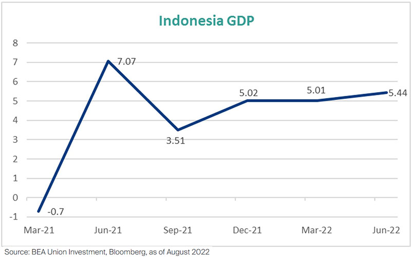 Indonesia has expected 2022 inflation could reach 6.6-6.8%, higher than 4.69% in August. The government said rates will continue to climb, but extent will be less than that of the US. A more disciplined rate hike path, plus elevated coal and palm oil prices, have helped steadied the country’s bond market and benefit commodities firms.